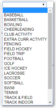 - If Athletics choose sport. All other choose Field Trip.