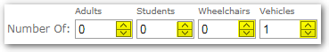Number Of Adults, Students, Wheelchairs or Vehicles (Drop Down Menu)