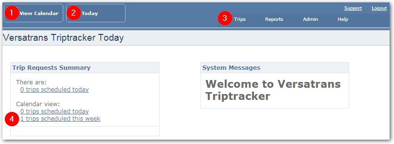 - All hyperlinks shown in Trip Requests Summary are clickable. You can click to see how many trips are scheduled during the current week or day