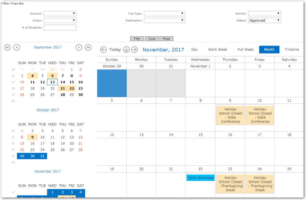 There is no default status selected when you go to the calendar. You can change the drop down to “Approved”.